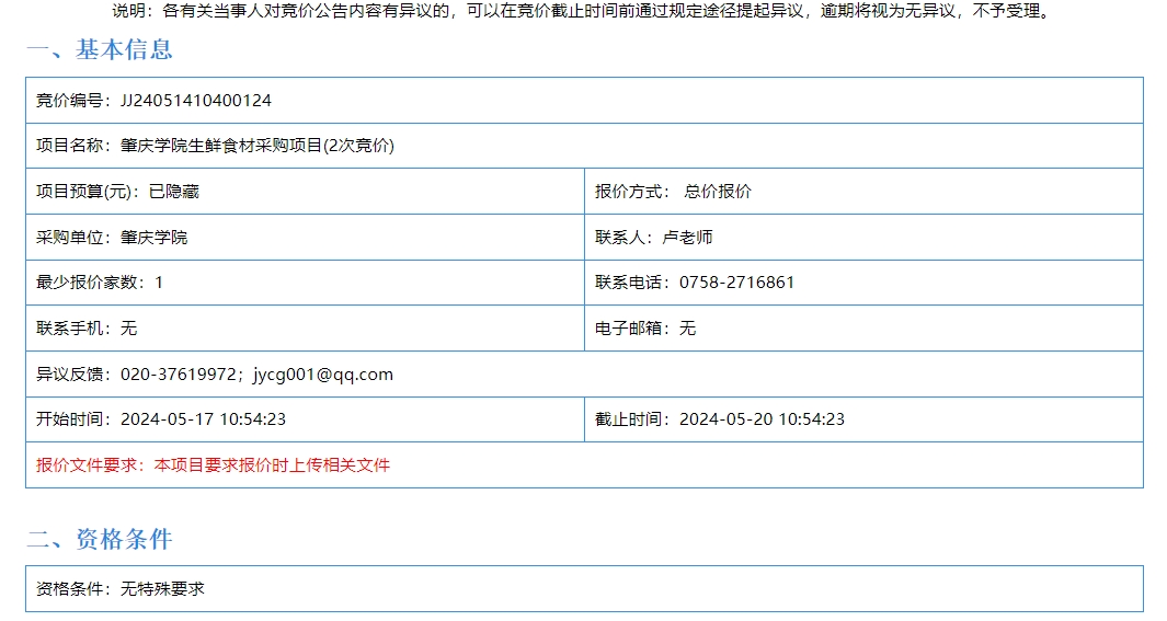 上一条:实验耗材采购(2次竞价)竞价公告(JJ24051717444680)